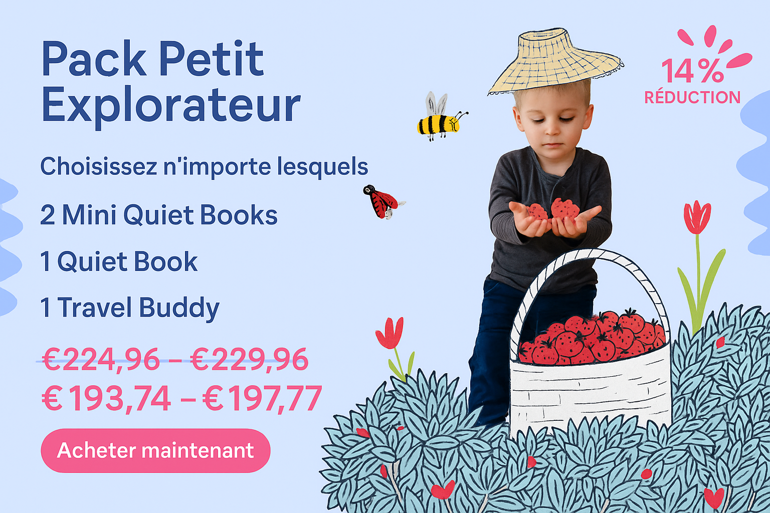 Jolly Designs comprend la déception de l’enfant lorsqu’une partie de son livre préféré est perdue. Notre service de pièces de rechange est une solution pratique pour que votre Quiet Book reste complet et vous procure du plaisir pendant longtemps.