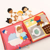 Fait main avec soin à partir de tissus lavables et sûrs, ce livre interactif allie apprentissage, créativité et imagination. Conçu par des experts de l’éveil, le livre tissu « Salut toi! » devient un compagnon précieux pour aider les enfants à comprendre et à pratiquer les routines quotidiennes.