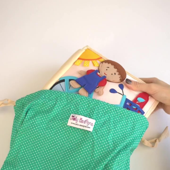 Chaque page de ce livre tissu d’activités sensorielles est une invitation à explorer, réfléchir et inventer des histoires. Les personnages joliment illustrés encouragent les jeux de rôle, tandis que l’enfant développe de manière ludique des compétences essentielles : boutonner, trier, associer, saisir et raconter.