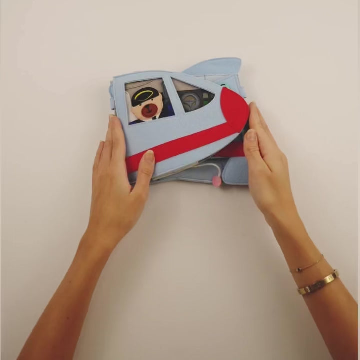 L’enfant devient le pilote de son propre avion, découvre le cockpit, appuie sur les boutons, ferme sa ceinture et décolle pour de nouvelles aventures.